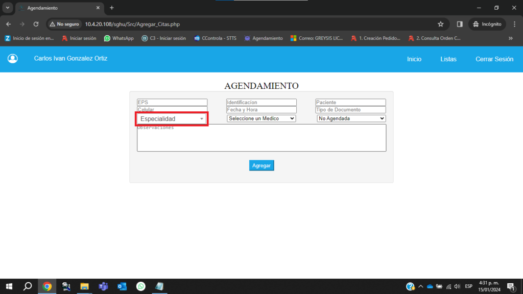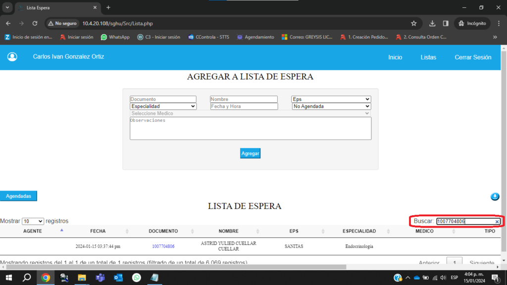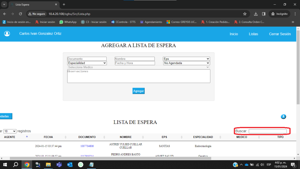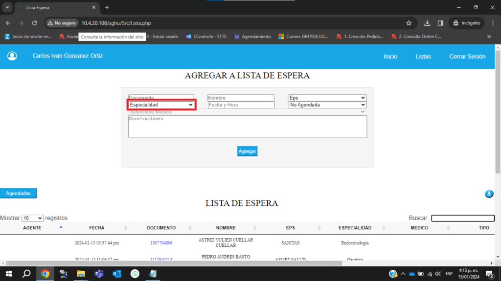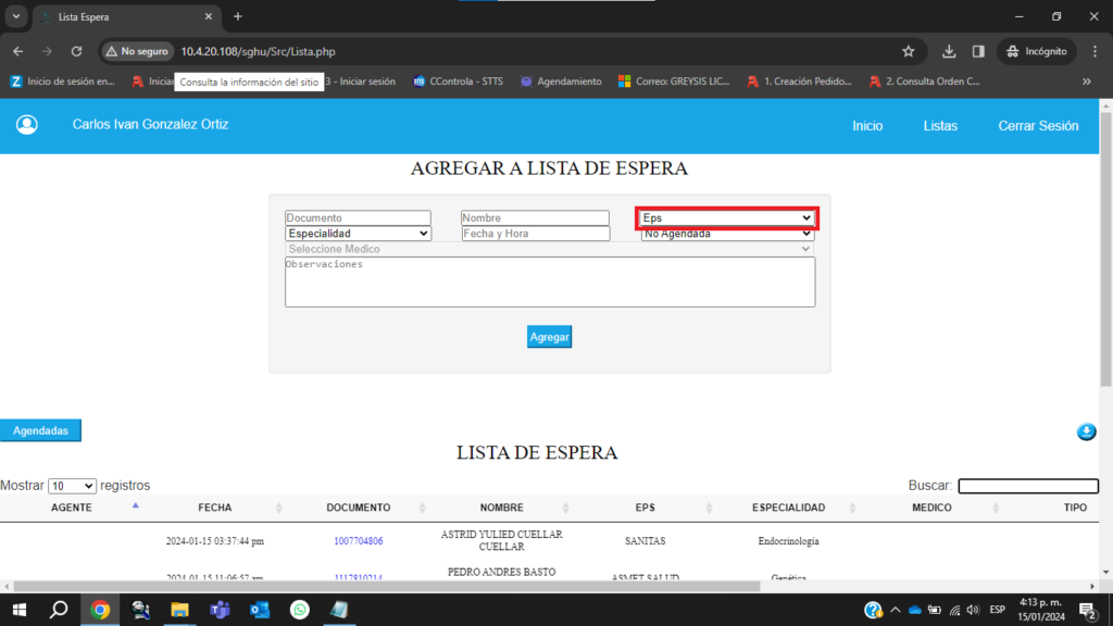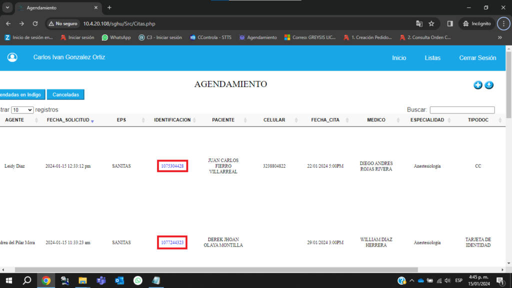 Es la plataforma usada para el control de agendamiento de citas y listas de espera del hospital Hernado Moncaleano Perdomo de Neiva HUHMP