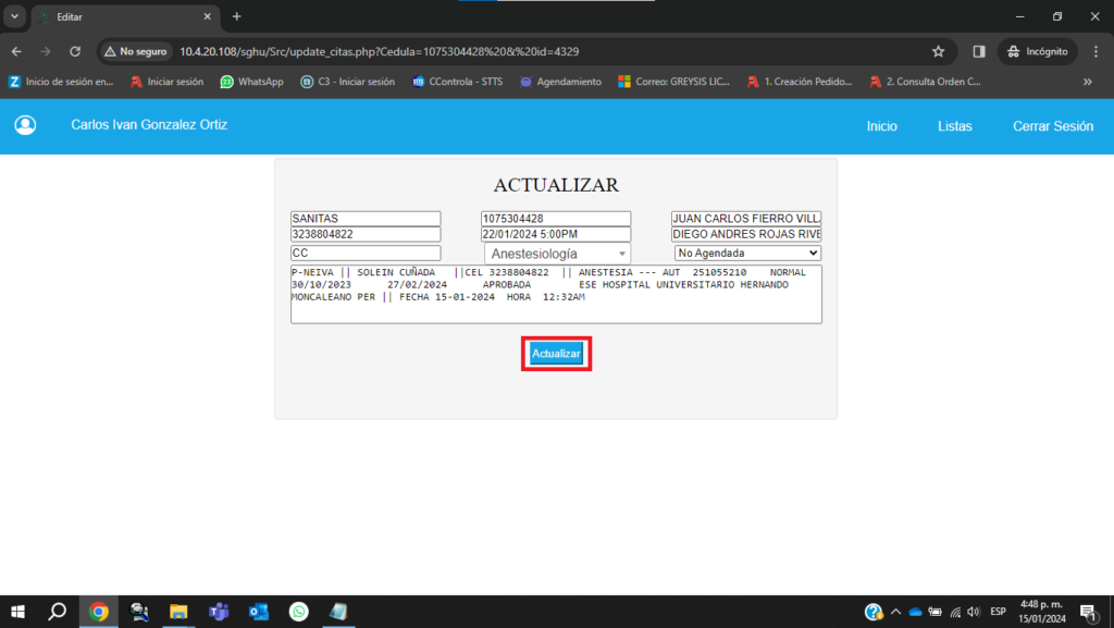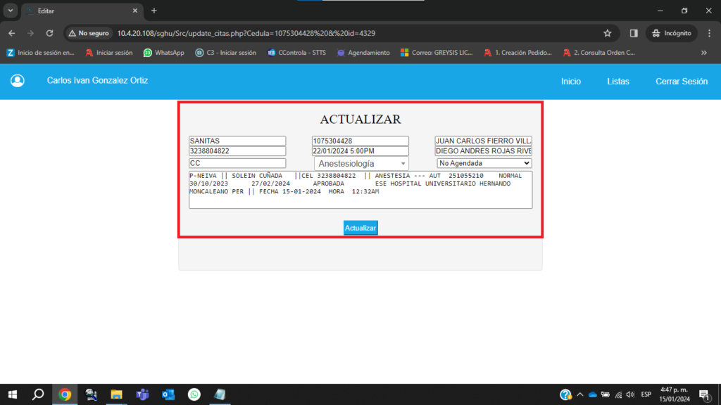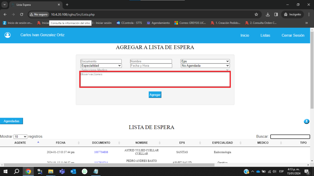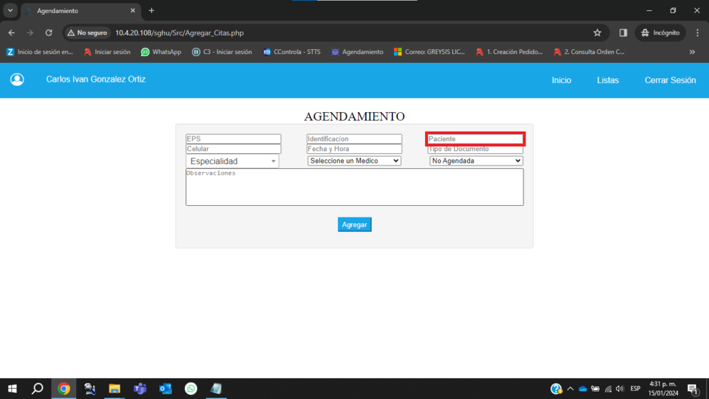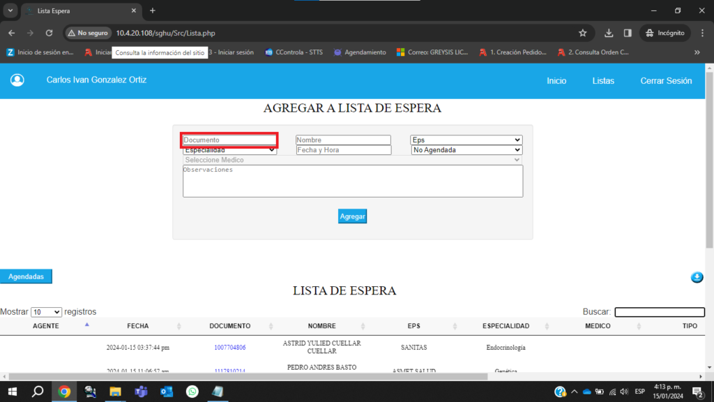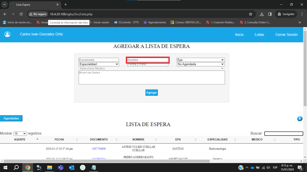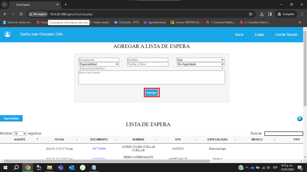 Es la plataforma usada para el control de agendamiento de citas y listas de espera del hospital Hernado Moncaleano Perdomo de Neiva HUHMP