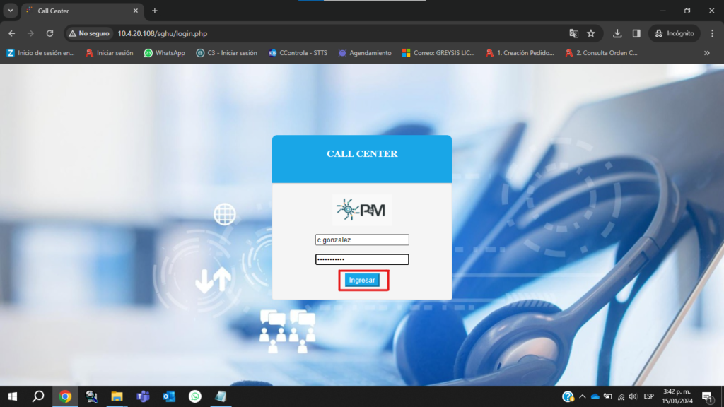 3. Serás redirigido a la página de inicio de sesión de la APP . Aquí, debes ingresar tus credenciales de acceso proporcionadas por el administrador y dar en el botón ingresar